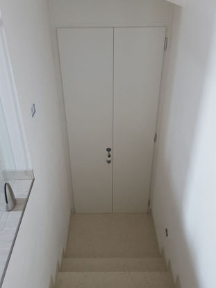 Porta a libro realizzata a pannello liscio internamente dalla nostra produzione interna. La finitura può essere laccata nelle tinte RAL, NCS o a campione.