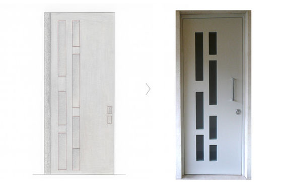 Mencato Porte realizza un bozzetto su misura, studiato nei minimi dettagli. Nel disegno vengono definiti colori, dimensioni, vetri, lavorazioni e finiture, per offrire una visione concreta e realistica della porta o del portoncino